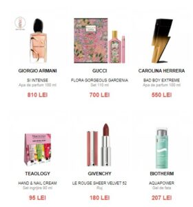 *Campania “Get more, Win more” este valabila in limita stocului disponibil, exclusiv online, in perioada 04-05.06.2023. Discountul diferentiat pe prag de comanda se aplica direct in cos, la atingerea sumei minime de comanda mentionate, pentru produsele la pret intreg din categoriile Parfumuri, Machiaj si Ingrijirea pielii, cu exceptia Parfumuri Niche si a celor cu livrare in aeroport. Discounturile nu se cumuleaza cu alte promotii active in site si nici cu voucher