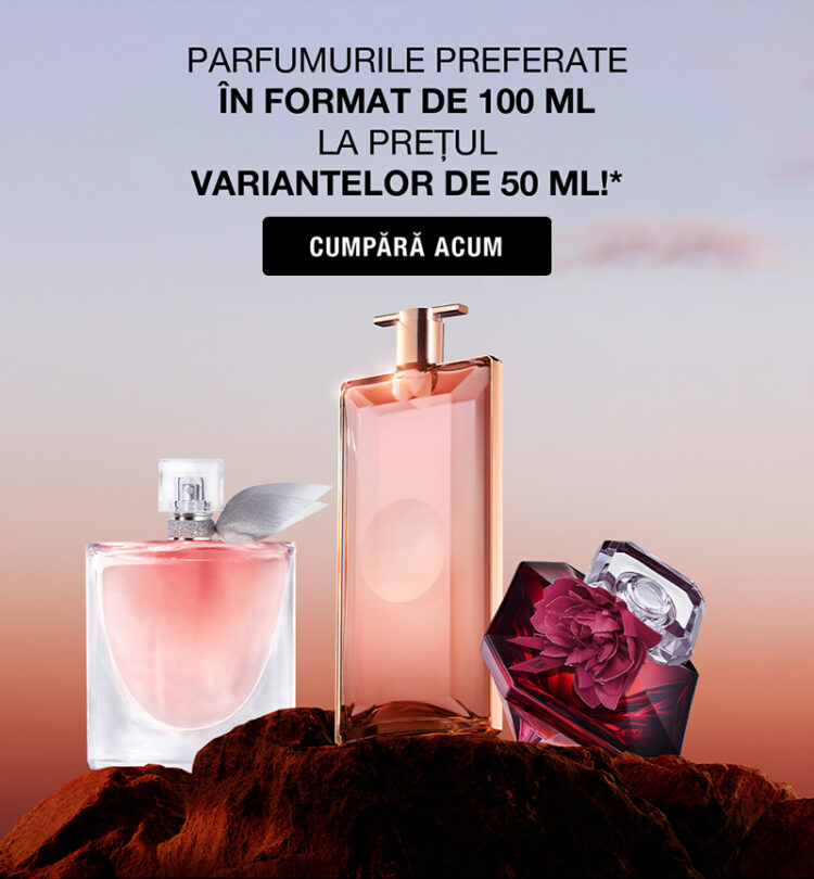 *Campania cu discount de 30% va fi valabila doar maine, 05.07.2023, si se aplica in cos in baza unui cod de voucher pe care il primesti la inscrierea in campanie prin formularul din pagina, la toate produsele din categoriile Parfumuri, Machiaj si Ingrijirea pielii, Accesorii si Fashion, cu exceptia produselor cu ridicare din aeroport si a Parfumurilor Niche.