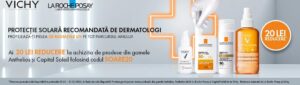 Profita de reducerea de 20 lei la achizitia de produse din gamele Anthelios si Posthelios de la Roche Posay  si Capital Soleil de la Vichy folosind codul SOARE20