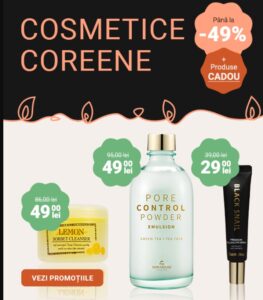 Descoperă brandurile și produsele preferate, adaugă în coș tot ce iubești și răsfață-te cu discounturi de până la -50% și produse cadou! În plus, la comenzile de peste 250 lei primești 11 mostre de Cosmetice Coreene GRATUITE și poți alege un cadou direct în coșul de cumpărături.