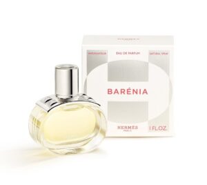 Inspirat de o piele rara de vitel cu acelasi nume, creat de Christine Nagel, acest parfum feminin se doreste a fi un contrapunct la celebrul Terre d’Hermes. Interesant este ca Barenia nu a fost o solicitare din partea cuiva, ci o dorinta personala a parfumierului. Barenia este un parfum chypre, avand note de crin fluture, lemn de stejar si patchouli, completate de un inceput proaspat de bergamota si fructul miraculos. Fructul miraculos (Synsepalum dulcificum) este cu adevarat uimitor, avand capacitatea de a transforma gustul alimentelor acide in dulce atunci cand este consumat inainte. Flaconul parfumului Barenia este inspirat de Collier de Chien (zgarda pentru caini), unul dintre motivele emblematice ale brandului, inventat in 1940. Designul sticlei reflecta o combinatie armonioasa intre delicatetea curbelor eliptice si forta placii metalice, acoperite cu studuri piramidale, subliniind astfel eleganta si rafinamentul caracteristice Hermes.