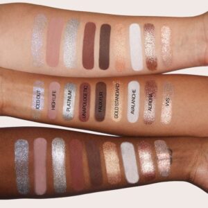 Paleta include 18 nuante ultra-pigmentate, perfecte pentru un look glacial. Aceasta combina texturi inovatoare, de la tonuri mate la nuante metalice si trio-chrome, oferind varianta perfecta pentru look-uri versatile si indraznete. Nuantele includ argintiu, gri, bordo si roz, iar texturile sunt special create pentru o aplicare uniforma, usor de amestecat, de la tonuri mate cremoase la sclipiri stralucitoare intense.