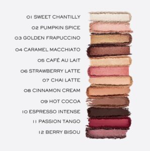Aceasta colectie aduce in prim-plan 12 nuante inspirate de tonurile calde ale cafelei, cu finisaje mate si stralucitoare, menite sa puna in valoare orice tip de personalitate si look – de la machiaje naturale de zi, pana la cele intense si indraznete de seara. Sheika Daley, recunoscuta pentru stilul jucaus si look-urile „yummy”, a creat o selectie de nuante care variaza de la tonuri de nude si maro pana la accente luminoase, ideale pentru a adauga profunzime si dimensiune oricarui machiaj. Formula ofera pigmentare intensa dintr-o singura aplicare si permite intensificarea culorii prin estompare. Textura este neteda si catifelata, usor de aplicat si confortabila la purtare. Paleta include si o oglinda practica, ideala pentru retusuri oriunde, oricand.