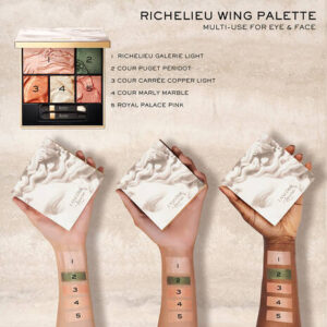 Paleta de farduri Richelieu Wing combină o pudră iluminatoare si patru nuanțe de fard de pleoape foarte pigmentate. Paleta de machiaj în ediție limitată este concepută de Lisa Eldridge și celebrează sculptura lui Corinne, o poetesă greacă din secolul al V-lea î.Hr., găzduită în aripa Richelieu a muzeului Luvru. Nuanțele paletei folosesc Tehnologia Prisma pentru un impact maxim de culoare și strălucire. Indiferent dacă preferați un aspect strălucitor subtil sau un aspect îndrăzneț, textura mătăsoasă blenduibila și construibilă oferă posibilități infinite. Fiecare nuanță poarta numele la o anumita parte  a aripii Richelieu; nuanța Peridot inspirată de Cour Puget, nuanta Copper de Cour Carrée; nuanța Marble de Cour Marly si nuanța Roz de Palatul Regal.