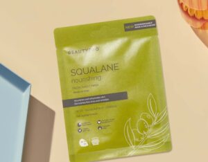 - BeautyPro Squalane Sheet Mask (Full-Size) – o masca de fata tip servetel pe baza de plante, foloseste uleiuri de masline, fructul pasiunii, ulei de portocala dulce organica si ulei de migdale organic pentru a hidrata în profunzime, reimprospata si imbogati pielea.