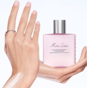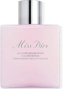 Laptele de corp Miss Dior, îmbogatit cu ceara de trandafir si compus din 93%* ingrediente de origine naturala, hraneste si inmoaie pielea zilnic. Textura sa luxurianta, proaspata si cremoasa se aplica fara a lasa un film uleios, invaluind pielea intr-o senzatie placuta de confort. Aplica laptele de corp pe pielea uscata si curata după ce faci baie sau dus, masand usor pana se absoarbe complet.