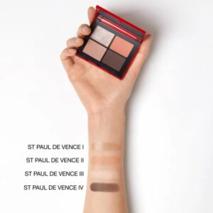 O paletă de farduri de pleoape in 4 culori noi pigmentate in ediție limitată care creează un aspect lejer. Nuantele paletei auriu șampanie deschis cu un sclipici argintiu cat si cele cu texturi mate in nuante de caise, bej și maro taupe adaugă adâncime dramatică.