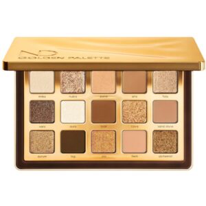 O versiune imbunatatita a paletei originale GOLD PALETTE de la Natasha Denona, in acelasi spirit. Paleta de farduri de ochi Golden a Natashei Denona combina nuante versatile pamantii aurii si metalice usor de folosit. Prezentand nuante noi si existente, care completeaza fara efort toate tonurile pielii pentru un look de zi usor sau glamour de seara, aceasta paleta de dimensiune medie include sapte nuante mate in doua forme (crema si pudra compacta), 5 nuante metalizate ultra-stralucitoare, o formula nude auriu scanteietor, un fard de finitie cristal cromatic sampanie efect „diamant” si o formula „efect umed sclipitor” intr-o nuanta nud aurie.