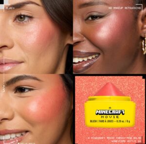 Primul produs din colectie este A MINECRAFT MOVIE Cheeky Mob Balms. Aceste balsamuri pentru obraji sunt disponibile in 3 nuante jucause, fiecare dintre ele avand o formula cremoasa si usor de aplicat. Formula se topeste in piele, oferind un look natural, definit si radiant. Aplicate pe pometi, aceste balme ofera o culoare subtila si un glow fara efort, fiind perfecte pentru un machiaj rapid si fresh. Produsele sunt vegane si cruelty-free, astfel ca poti sa le folosesti fara grija: