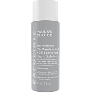 Paula’s Choice Skin Perfecting 6% Mandelic Acid + 2% Lactic Acid Liquid Exfoliant este un produs de îngrijire a pielii care conține o combinație de două tipuri de acizi exfolianți: acid mandelic și acid lactic. Acești acizi ajută la îndepărtarea celulelor moarte ale pielii, reducerea aspectului porilor și îmbunătățirea texturii pielii.
