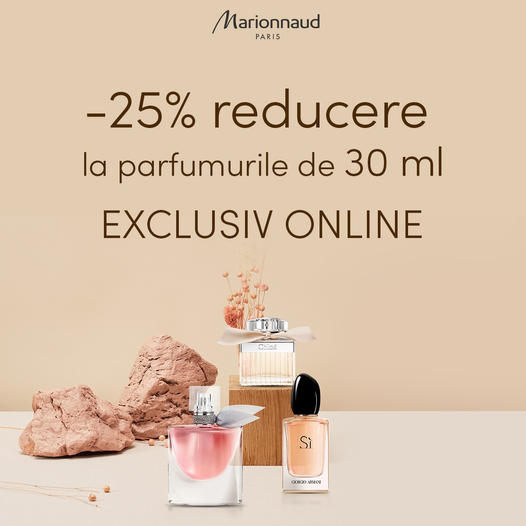 Marionnaud ofera reducere 25 % la parfumurile de 30 ml. Exclusiv online.