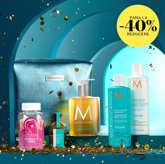 Profita de reducerile de vară de pana la 40% la produsele pentru ingrijirea parului de la de la branduri precum Moroccanoil, GHD, K18, Curly Shyll, L’Oréal Professionnel, Wella Professionals, Olaplex, IVYBEARS sau Tangle Teezer. Iar asta nu e tot! Te poti bucura și de extra oferta FREE GIFT la produse de la branduri selectate. Promoțiile sunt valabile în perioada 8-31 august, în limita stocului disponibil.